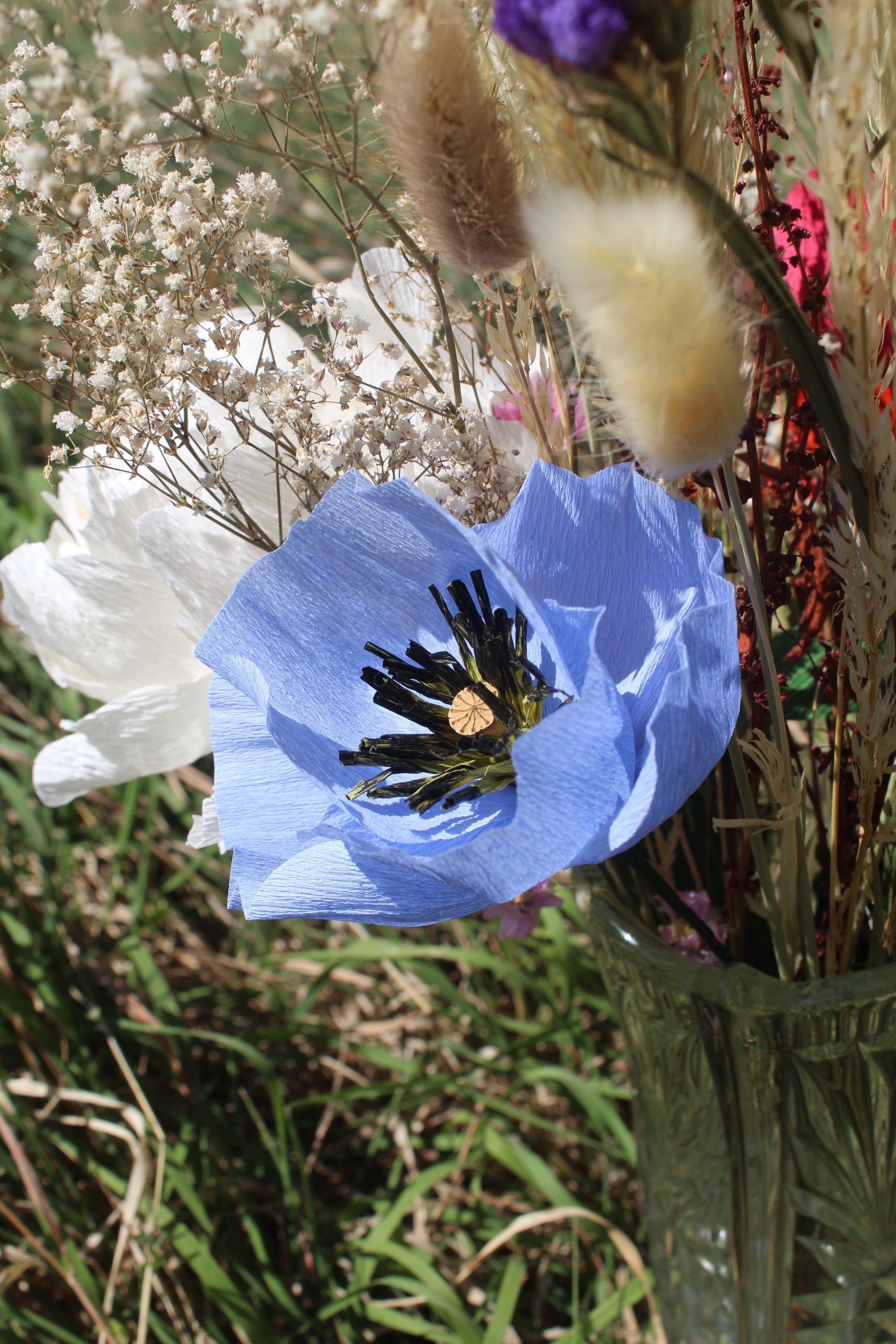 Fleurs en papier crépon confectionnée à la main